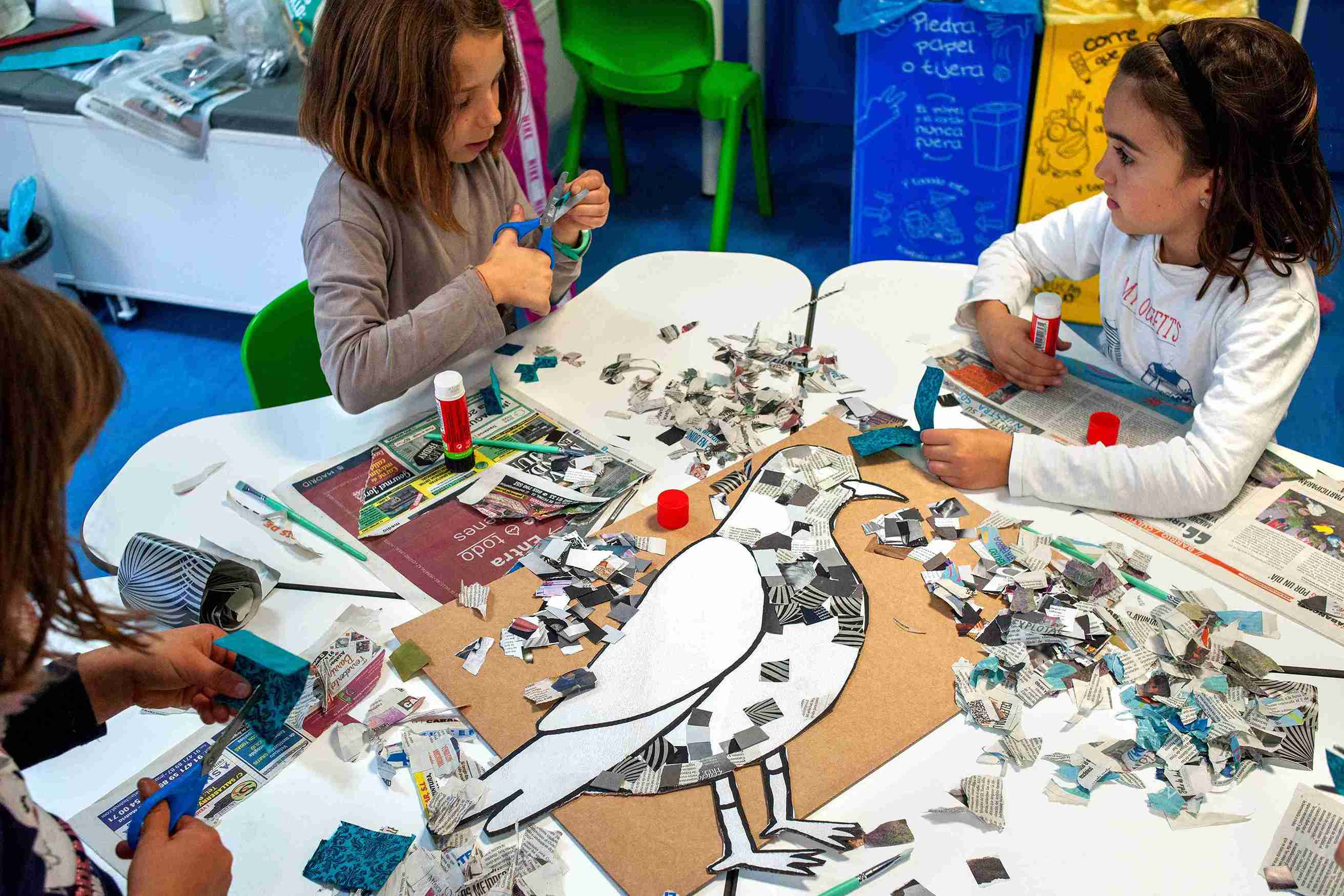 Taller inspirado en la diversidad y la belleza de las aves para ofrecer a los escolares un acercamiento amable y creativo al mundo del diseño industrial y la escultura. Para esto, usaremos materiales reciclados y cotidianos con los que los participantes podrán crear sus propios tordos y ocas. Sus obras personalizadas serán luego expuestas en 2 obras escultóricas colectivas a pie de calle.